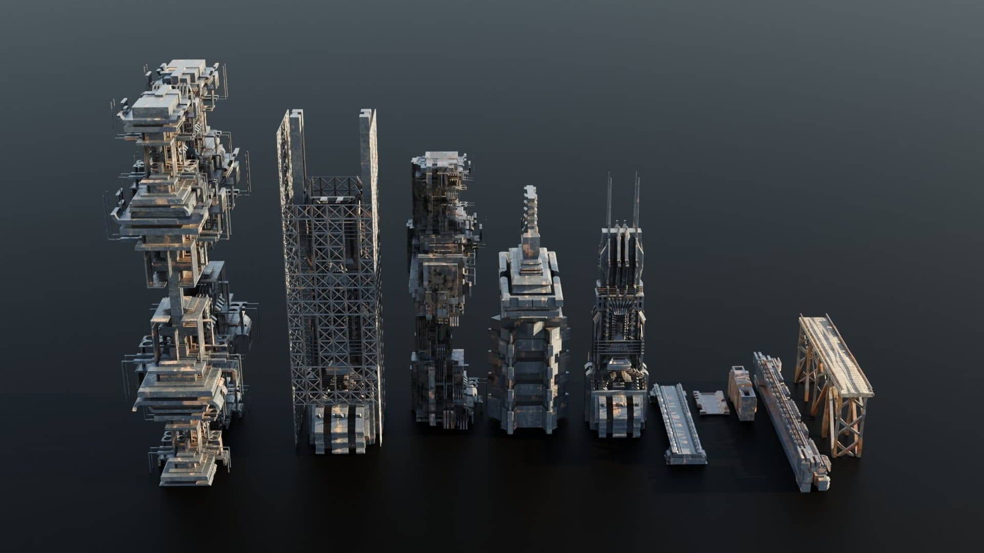 无论是末日题材游戏、科幻影视场景,还是概念艺术创作,这套资源都能帮助您快速搭建富有故事感的未来废墟环境。