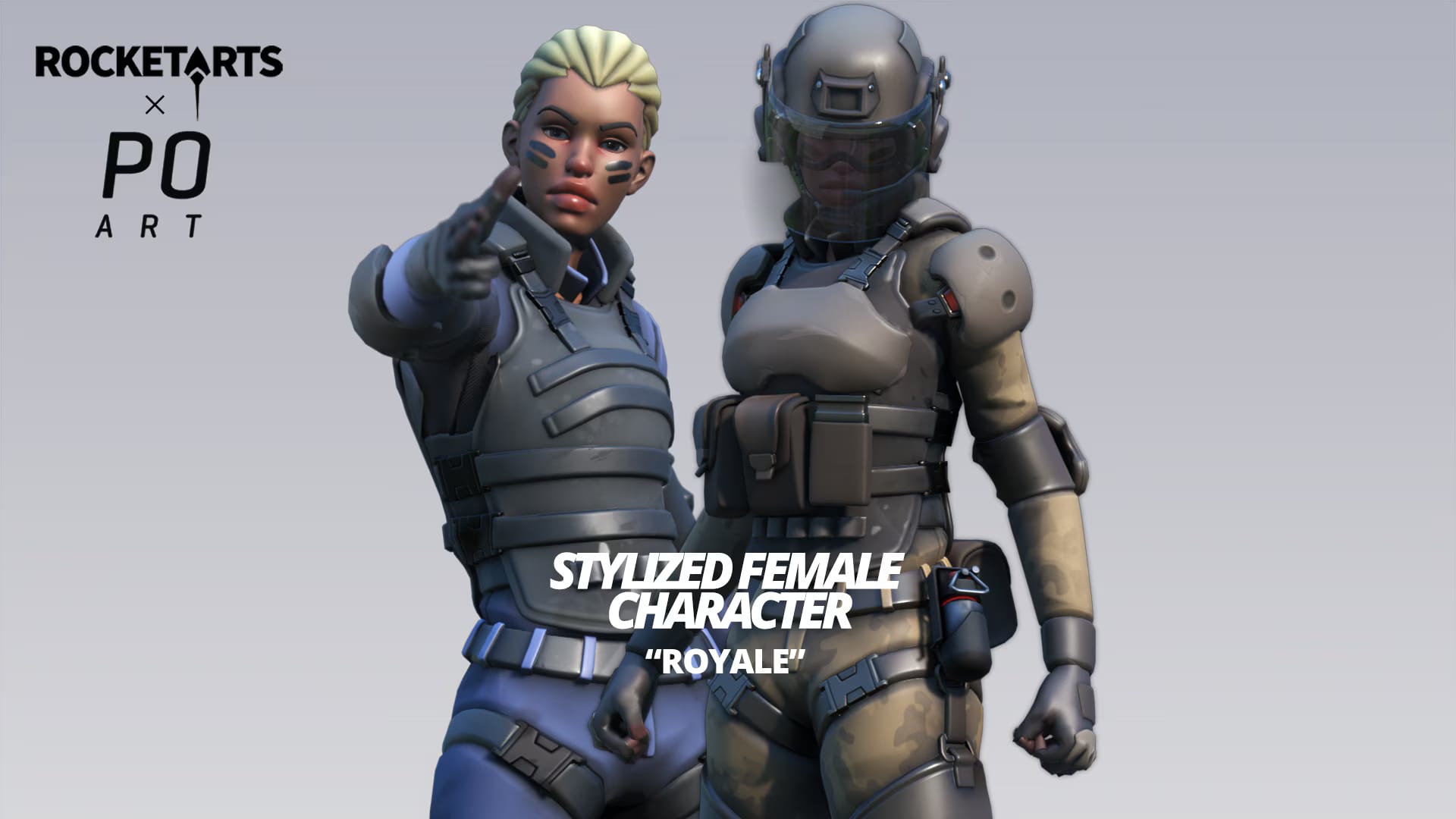 此角色资源包是与PO-Art合作制作,包含直接兼容PO-Art”风格化女性”体型以及ROCKETARTS”运动型”女性角色的模型变体。