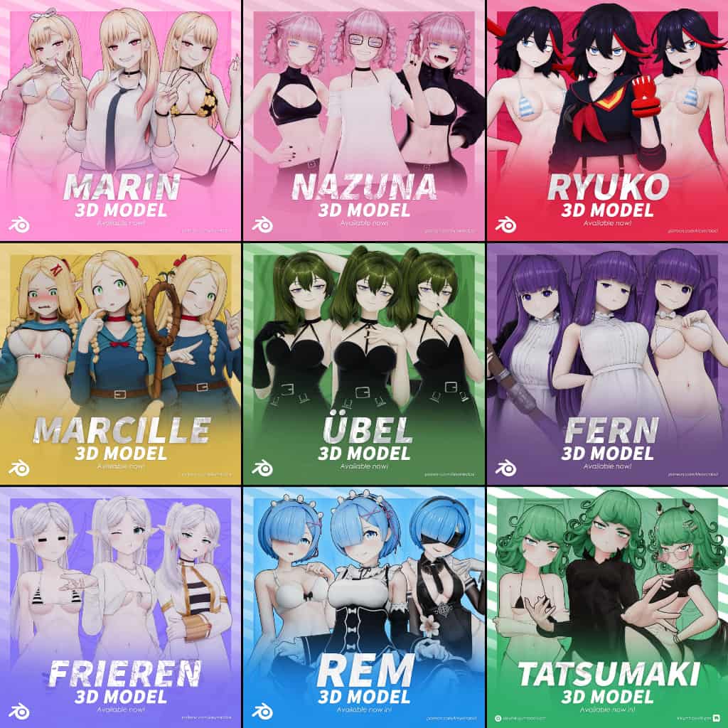 此合集包含艺术家 Kley Mirabal 从其 Patreon/Gumroad 页面发布的 8个3D模型。