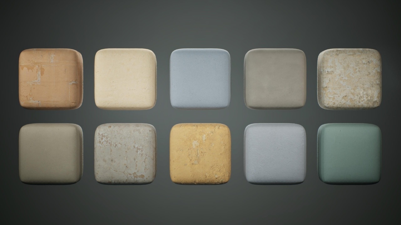本产品包含 10种 在欧洲不同地点通过摄影测量技术扫描得到的石膏/灰泥材质。这些扫描数据以 8K 无缝平铺的 PBR 纹理 形式提供,并已在引擎中完成设置。每种材质均包含: