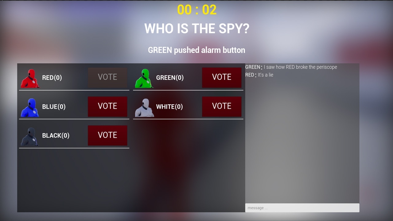 潜艇船员可以按下警报按钮或报告尸体,以发起投票、讨论并找出间谍。