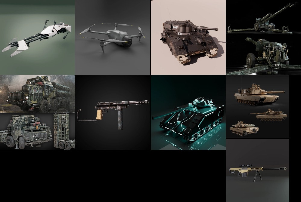 来自 BlenderKit 网站/插件的多样化军事模型集合