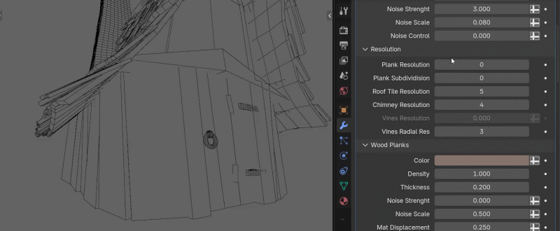 您可以调整小屋各个元素的分辨率,以便为您的项目进行优化。您可以为特写镜头设置高分辨率,为远景镜头设置低分辨率: