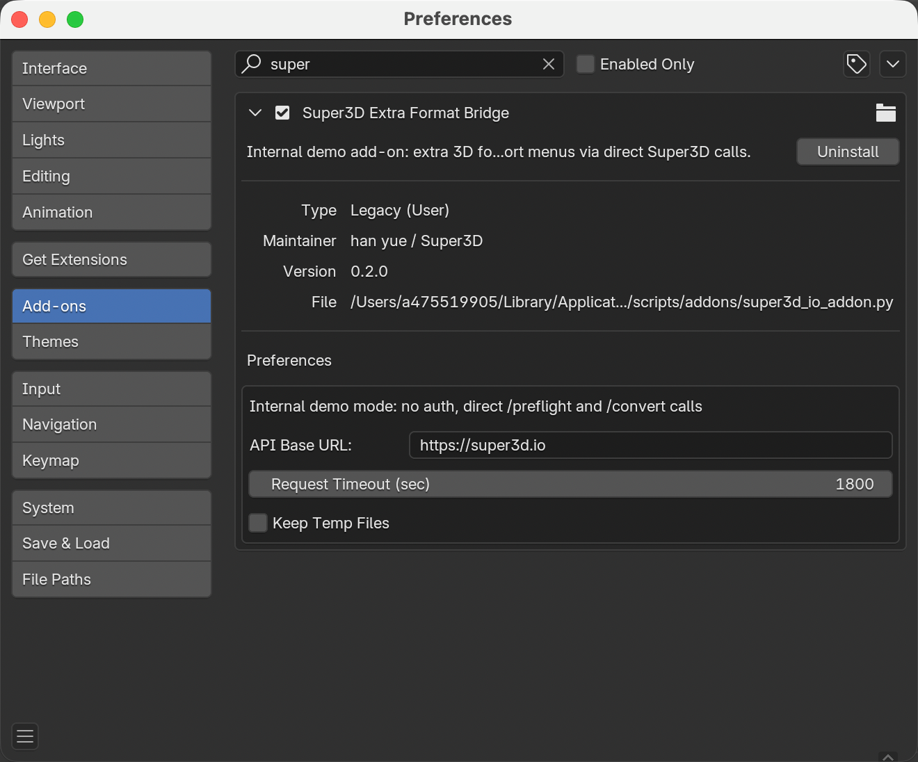 OBJ文件通过Super3D服务转换为所选格式并保存在本地。